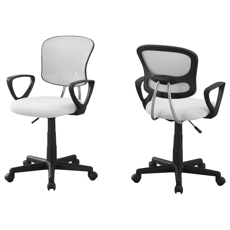 The molded industrial grade black plastic is durable, strong, and resists moisture The breathable mesh back is designed to ensure you stay cool and comfortable throughout the day, letting you focus on the job at hand. Cultivate a healthier posture this chair that lets you instantly fine-tune the height of your seat according to the height of your table, so you can minimize slouching and posture-related ailments such as neck/shoulder strains and backaches. Arms are stationary in a fixed position Designed with a combination of practicality and good looks, this chair is just what you need to complete your office or home office. 33″ H x 21.5″ W x 23″ D