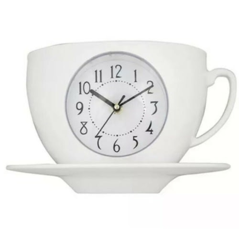 Lovely white wall clock shaped like a cupThis tea coffee mug-shaped wall clock will make the perfect gift for someone who can't do without tea or coffee. This Tea Coffee Mug Wall Clock projects a high contrast look with White body and white dial with clear