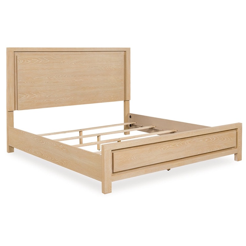 Love casual design with a modern flair? We've got you covered with this striking California king panel bed. A light natural finish enhances the beautiful wood grain character with a relaxed vibe. The stocky solid wood frame captures a floating panel for a