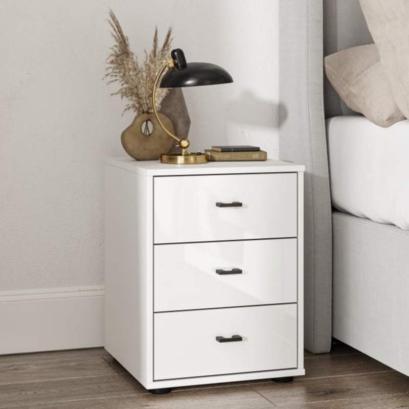Experience elegance and practicality with the Kahla Glass Fronted 3 Drawer Bedside Table. Available in a choice of trendy colours, this bedside table boasts modern slate coloured handles, adding a touch of sophistication to the glass fronted drawers. Designed with longevity in mind, this piece is crafted with highly resilient metal fittings and scratch resistant fronts. Delivered fully assembled, the Kahla bedside will seamlessly integrate into your bedroom space.