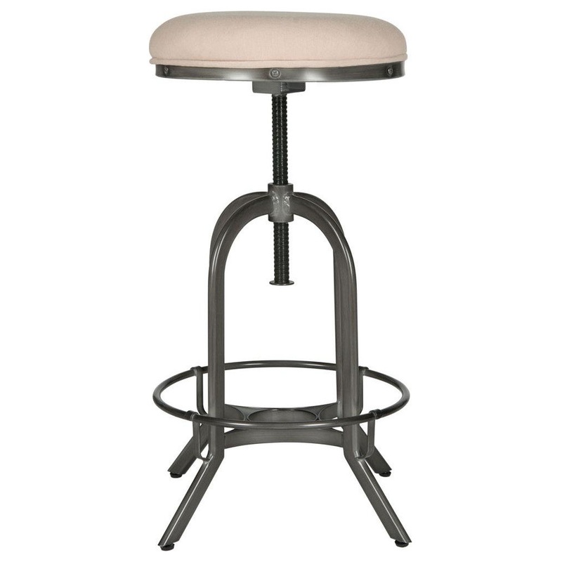 Industrial chic design is always in vogue, and this cool-looking perch echoes the lines of mid-century drafting stools. Crafted with the look of a vintage piece with beige linen upholstered seat and burnt oak-finished frame with foot rest and splayed legs.