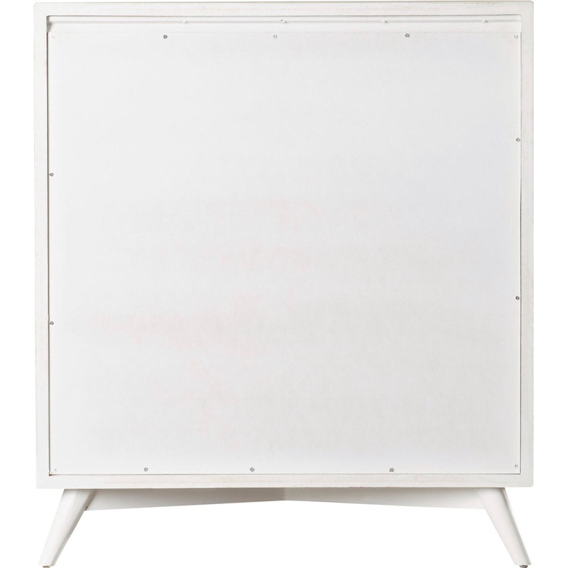 This 4-drawer vertical chest gives you extra storage space to keep your bedroom organized. Crafted from kiln-dried solid and engineered wood, it showcases a bold finish of your choice to suit your room’s overall aesthetic. It also has a rectangular profile and tapered, flared legs to complete the look. Felt-lined top drawers protect delicate items, while a central pullout tray is a great place to hold jewelry as you get ready for the day. Plus, a wall anchor is included for extra stability. AllModern Color (Frame/Drawer): White