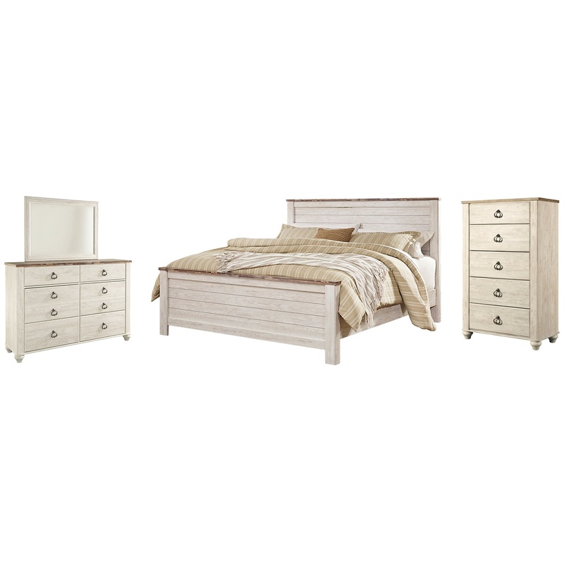 Willowton King Panel Bed with Mirrored Dresser and Chest