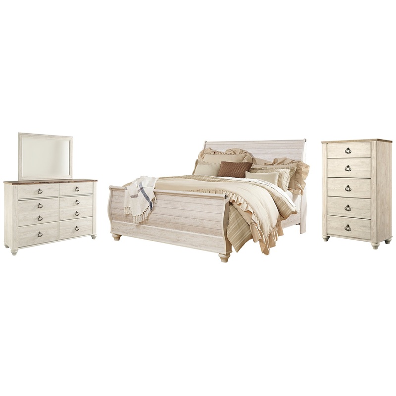 Willowton King Sleigh Bed with Mirrored Dresser and Chest