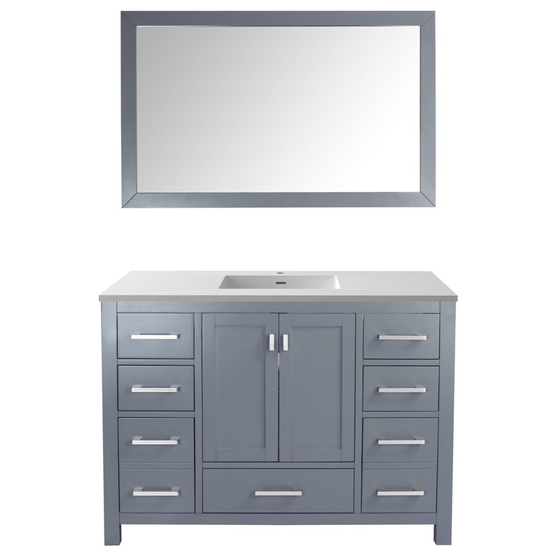 Wilson 48 - Grey Cabinet + Matte White VIVA Stone Solid Surface Countertop313ANG-48G-MW Wilson 48 - Grey Cabinet + Matte White VIVA Stone Solid Surface Countertop, The Wilson Collection is a uniquely simple yet attractive collection. It features recessed p