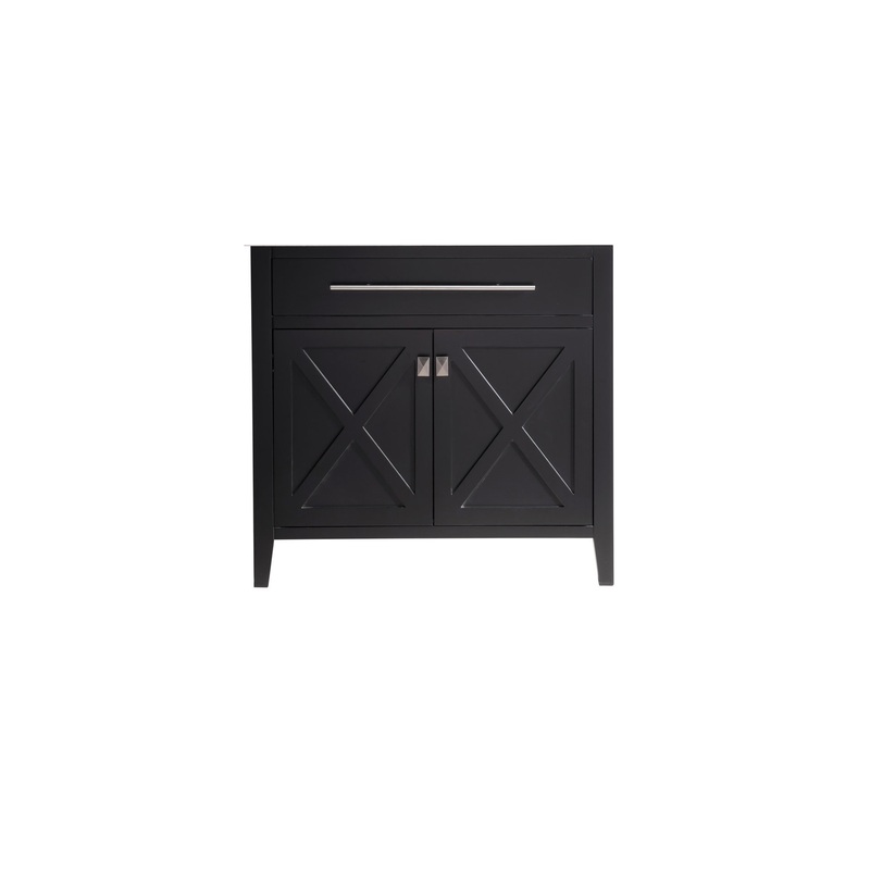 A no-frills example of a classy act, thats confident of its clean and simple style, is the Wimbledon Collection. X does mark the spot of the two doors front and centered showcase. Its elegant and refined contribution is exhibited by it unique towel bar handle on the top of the cabinet. Once you open the doors, youll be surprised by the dual levels of shelves and the humongous space for storage. With your selection of the Wimbledon collection, youll become the champion of your selective taste. Youll know youve scored highest by your guests compliments! Available in single sink option in 24 and 36 or double sink option in 60. Also available in the following finishes: Brown, White, Espresso, and Grey.
