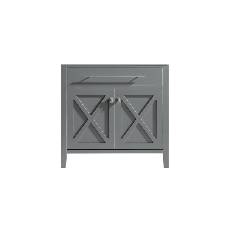 A no-frills example of a classy act, thats confident of its clean and simple style, is the Wimbledon Collection. X does mark the spot of the two doors front and centered showcase. Its elegant and refined contribution is exhibited by it unique towel bar handle on the top of the cabinet. Once you open the doors, youll be surprised by the dual levels of shelves and the humongous space for storage. With your selection of the Wimbledon collection, youll become the champion of your selective taste. Youll know youve scored highest by your guests compliments! Available in single sink option in 24 and 36 or double sink option in 60. Also available in the following finishes: Brown, White, Espresso, and Grey.