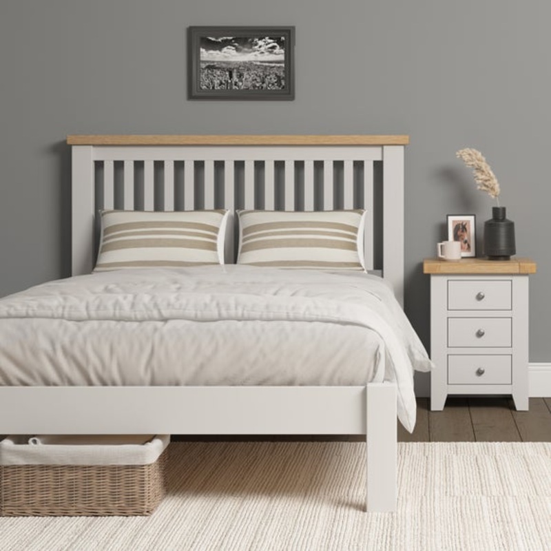 A reliable choice for any bedroom, the Windsor Low End Bed Frame brings together thoughtful design and everyday comfort. Its slatted headboard and oak top rail add a warm touch that works well across different interior styles. The sturdy frame includes a solid slatted base and steel centre rail, offering dependable support without the need for a box spring. Whether its for a guest room, rental or your own space, this bed frame is built to last. Its part of a wider furniture collection, so you can easily coordinate with matching pieces. Available in a range of colours to suit your setup.