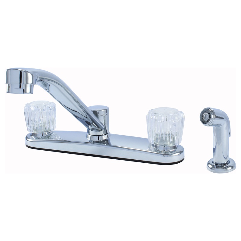 -Hybrid Metal Deck Faucet -High Quality Washerless Cartridge for Durability and Reliability -Acrylic Handles for Flair -Double Handle -With Spray -Chrome Finish -8" on Center Installation -Flow Rate: 1.8 GPM -Easy do-it-yourself Installation -Standard 1/2"