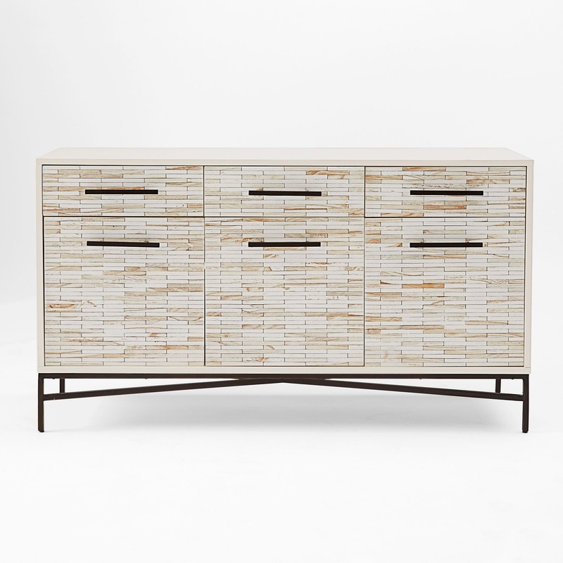 The Wood Tiled Buffet brings texture and warmth to dining or living spaces with its handcrafted, geometric wood-tile facade. Made from solid and sustainably sourced wood, this piece balances artisanal detail with clean, modern lines. Behind the intricately patterned doors lies generous storageadjustable shelving keeps dinnerware, serveware, or bar essentials neatly tucked away. Both functional and sculptural, it’s a standout piece that grounds the room in natural beauty.