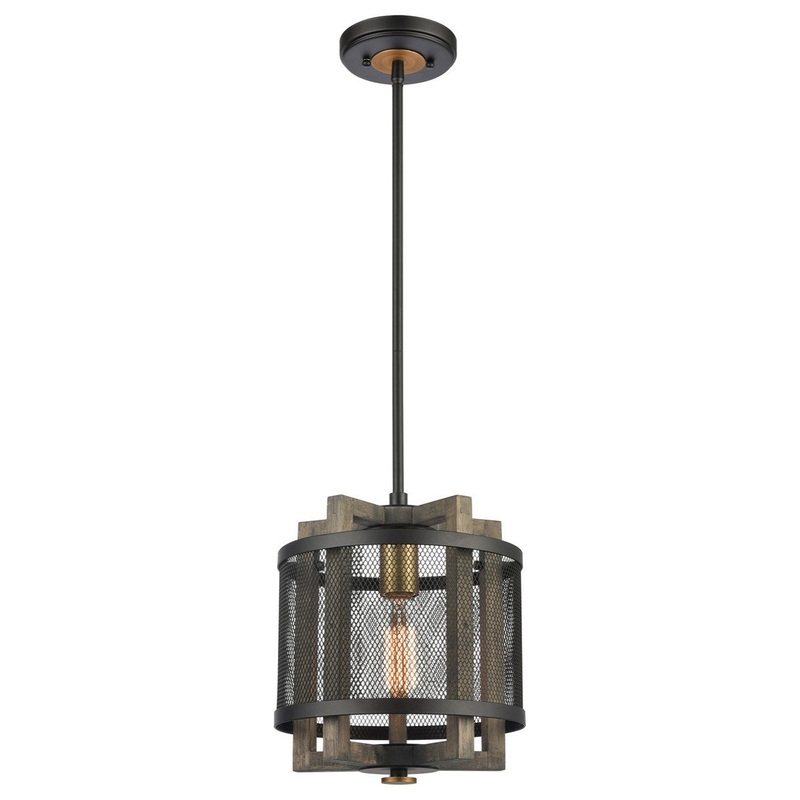 The Woodbridge pendant combines solid wood with complementing metalwork. The aged look of the weathered oak-finished wood coordinates with the matte black and aged brass finish. -Style: Transitional,Modern Farmhouse,Country,Cottage -Finish: Matte Black/Wea