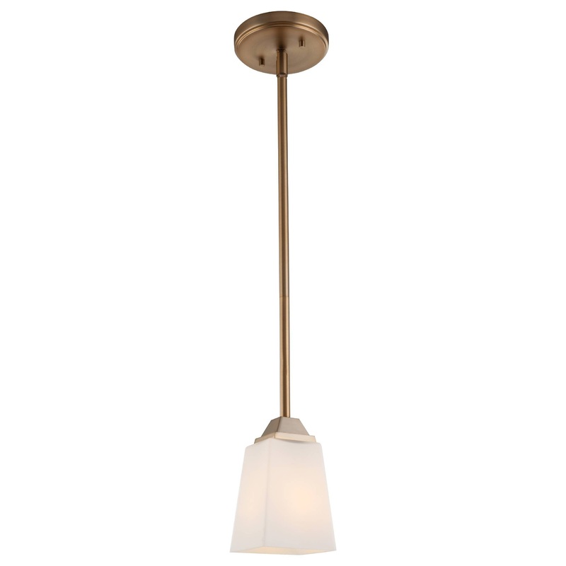 -This mini-Pendant hangs a fine tapered trapazoidal opal glass by a stem. Its smooth design is a good fit for many transitional environments. -Wattage: 60 -Bulbs Included? No -Number of Bulbs: 1 -Bulb Type: E26Model # (MPN)18723CBRProduct ID109152577Manufa