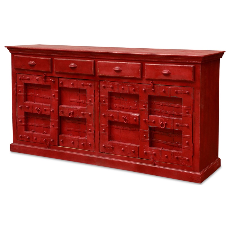 If you want to add a spot of bright color to your dining room, this Reclaimed wooden sideboard is a perfect choice. You can store dinnerware, cutlery, flatware, table linens, and similar items in the sideboard. All of these essentials will be out of the way but also within easy reach, allowing you to set a table for a dinner party quickly. Our Reclaimed wooden sideboard has four doors, which means it provides ample storage options.