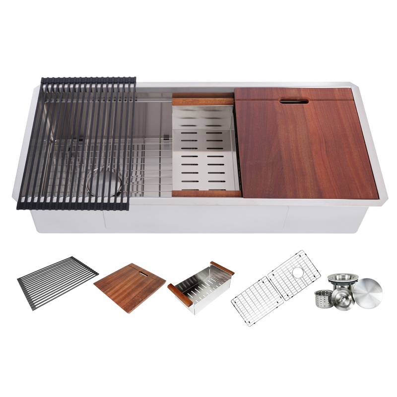 Inspired by professional grade kitchens, the sink is introducing the perfect heavy duty workstation sink for the kitchen enthusiasts The 2 level integrated ledges serve as a platform for our custom accessories to slide across the sink you can thaw food, ch