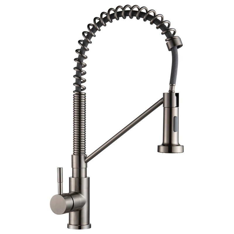 -Single Handle High arc pull out kitchen faucet ceramic disk cartridge with overall height of 18.3" inch, Satin Nickel finish -Ceramic Disc Cartridge -Satin Nickel Finish -Stainless Steel -Solid Brass waterway construction -With hot and cold indicator -Mee