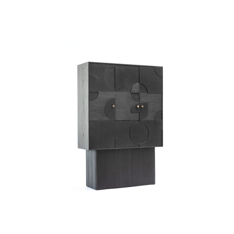 The soft-close mechanism ensures effortless and quiet operation, while the solid brass door knobs add a touch of subtle luxury. The geometric embossed patterns on the doors blend artistic aesthetics with modern sophistication, making this bookcase not only a storage solution but a centerpiece in any room.