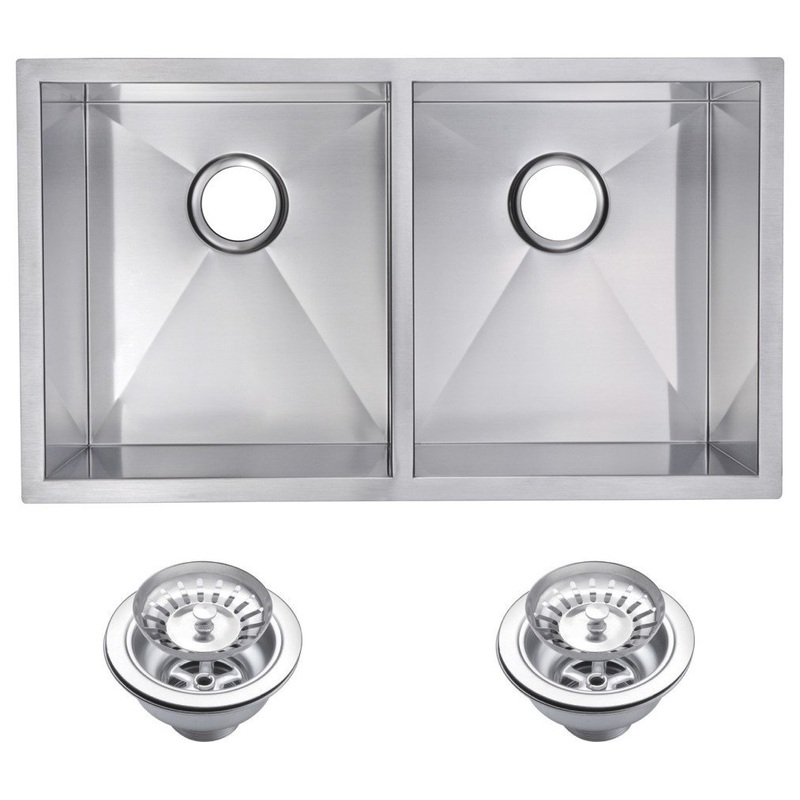 Zero Radius 50/50 Double Bowl Undermount Kitchen Sink With Drains And Strainers – Contemporary – Kitchen Sinks – by Water Creation