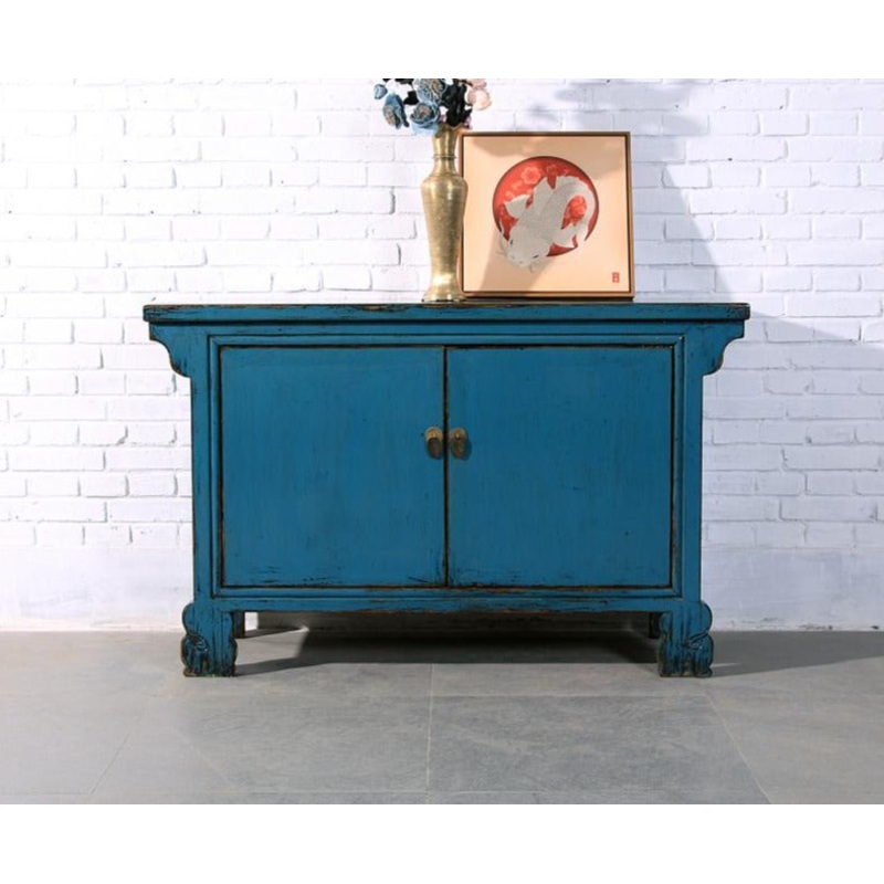 Zhang Chinese style cabinets , the retro furniture antique sideboards made from elm solid wood , great for storage cabinets . Hand crafted by skill carpenter using traditional method and artwork.Size135W x 45D x 85HColor classification:indigo blueChinese r