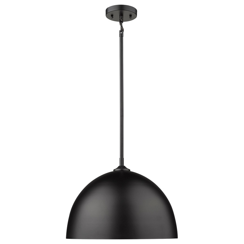 Golden Lighting’s Zoey Collection is proof that simple can be beautiful. This elegantly utilitarian series has the chic versatility to enhance the style of a variety of spaces. The smooth lines of this minimalist design pair well with transitional to modern decors. The cleanness of the contemporary look gives the fixtures a slightly industrial feel. Zoey is offered in two sizes with three smooth finish options; Matte Black, Olympic Gold, and Pewter. The shades are available in three matte finishes; Matte Black, Matte Gray, and Matte White. The color of the shade’s interior consistently matches the shade’s exterior finish. The silhouette of the metal shade is a modern update to the classic dome shape. This large pendant will provide bright light when grouped over a kitchen island or hung individually over a breakfast table.