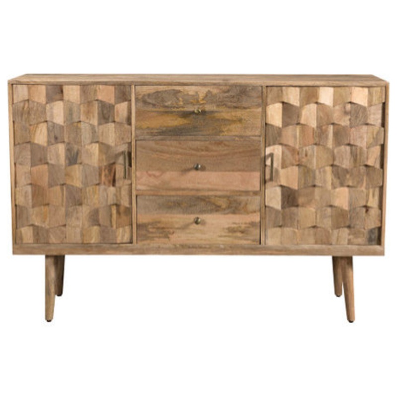 Arrange an outstanding centerpiece for your foyer or accent your living room with an accessory of unparalleled design with our gorgeous handcrafted cabinet. Created for both functionality and impeccable style, our mango wood cabinet effortlessly brings a chic mid-century modern atmosphere to any space with an impressive 3D tile weave design and sturdy wood frame. Completed with ample storage space, our impressive cabinet provides all sorts of options to remove clutter that will have all your guests in awe of your decor.