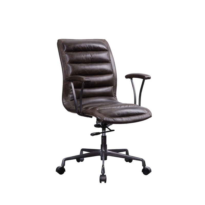 -KD, Executive Arm Office Chair (High Back) Seat: Swivel (360 Degrees), Adjustable Height (Pneumatic Lift), Square Shape Padded Seat and Back: Top Grain Leather Cushion, Horizontal Tufted, Inner Frame: Ply Arm: Padded Top and Metal Support Backrest: Padded 5-Star Base w/Casters: Metal Base, Matte Iron