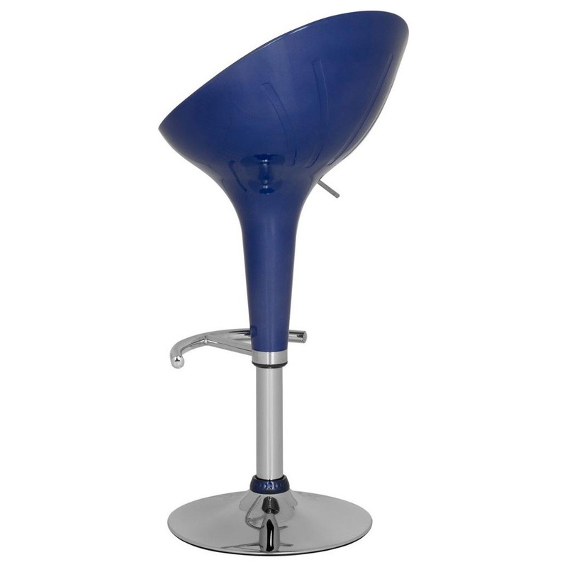 Inspired by the trumpet shape of the calla lily, the Zorab Gas Lift Swivel Barstool brings a new spin to any room in need of a pop of fresh, fun style. The curved back of its navy blue ABS swivel seat contrast its sleek chrome steel base and footrest. Easy