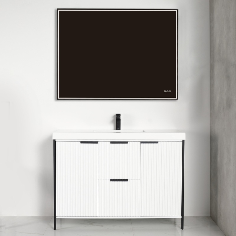 -Contemporary Bathroom Style: Inspired by the clean lines and minimalist aesthetic synonymous with North European design, two sophisticated color options in Glossy White and Metal Grey that match with matte black metal handles and legs, reflects the timeless elegance and a touch of urban chic. Ensuring your space exudes a sense of effortless refinement.